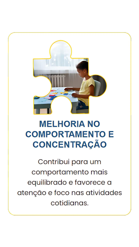 O suplemento foi desenvolvido especialmente para crianças no espectro autista, mas também pode beneficiar crianças com dificuldades de concentração, sono desregulado, seletividade alimentar e irritabilidade.
